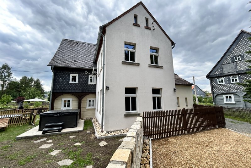 Das Ferienhaus Hexe wurde 1790 erbaut als klassisches Doppelstuben-Umgebindehaus. In den ehem. Webstuben (Blockstuben) befinden sich heute das Wohnzimmer und 2 Schlafzimmer. Alle Schlafzimmer verfügen über eigenen Sat-TV. Die Bäder wurden 2022 komplett neu gemacht.