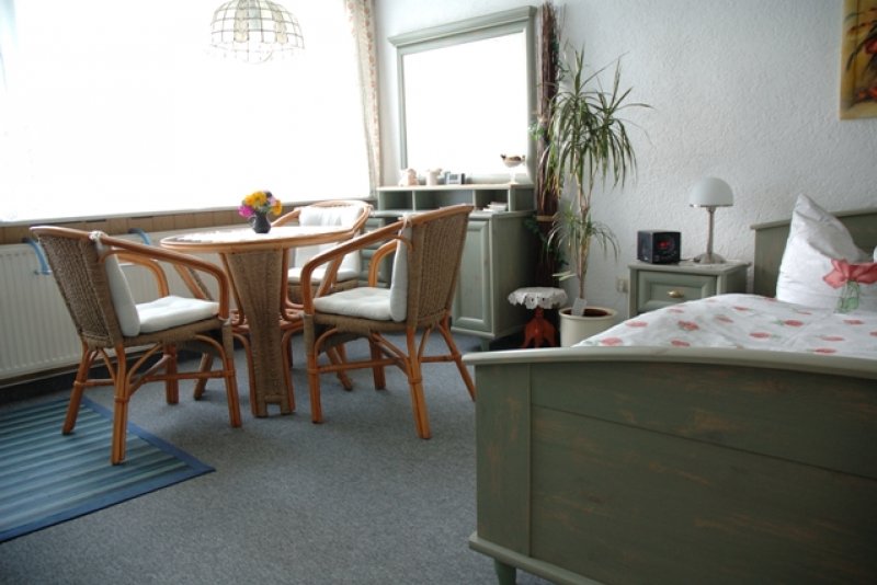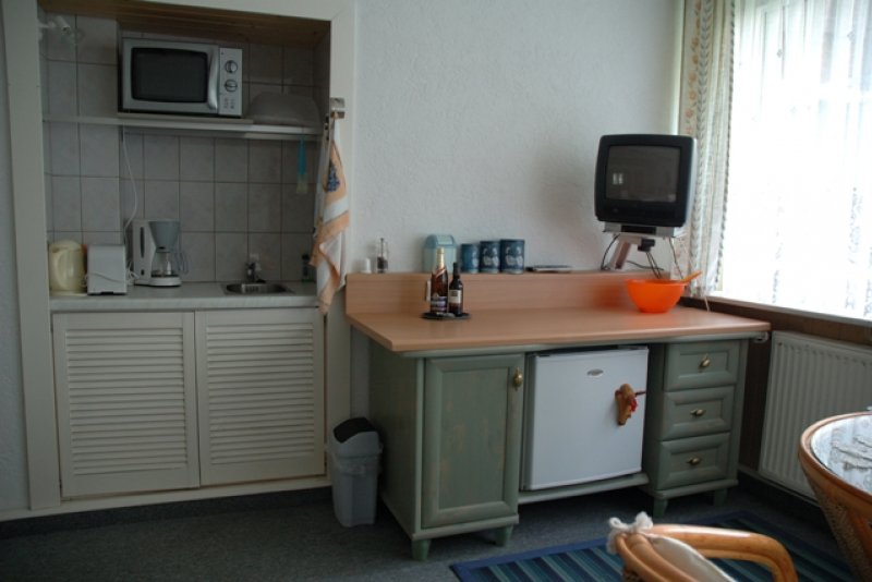 Wohn-Schlafraum, Größe ca. 20m², Dusche/WC, Kochnische, Mikrowelle mit Grill, Toaster, Wasserkocher, Kaffeemaschine, Kühlschrank, TV, Bettwäsche, Handtücher, Nichtraucher.