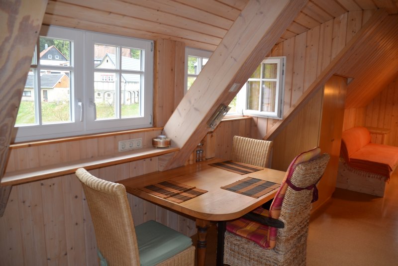 Mit meiner Enkelin habe ich vier Tage in der gemütlichen Ferienwohnung verbracht. Auch wenn das Wetter mehr Regen als Sonne bereit hielt, hat das nicht gestört. Die Holz verkleideten Wände vermittelten Behaglichkeit und meine Enkelin fühlte sich in dem "Bodenkämmerlein" sehr wohl. Durch die Lage des Hauses in Hain waren alle Ziele schnell zu erreichen. Wir hatten nichts zu bemängeln, auch wenn Handy- und Fernsehempfang schlecht funktionierte, es gibt ja noch Bücher und Gesellschaftsspiele.