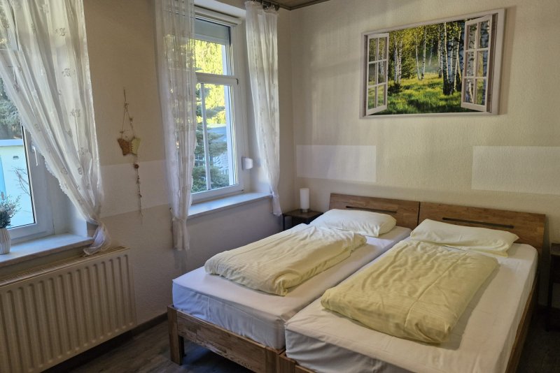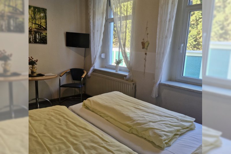Unser Doppelzimmer überzeugt durch eine freundliche Atmosphäre und eine praktische Ausstattung. Das Zimmer ist lichtdurchflutet und bietet ein komfortables Bett, ein eigenes Bad sowie einen Fernseher für entspannte Abende. Es eignet sich hervorragend als Ausgangspunkt für Ausflüge und Aktivitäten in der Umgebung - auch mit Hund buchbar. Nach einem erlebnisreichen Tag können Sie hier zur Ruhe kommen und neue Energie tanken. Gäste der Unterkunft Pension Jeschkenblick können ein als Buffet angebotenes Frühstück genießen, welches bereits im Preis enthalten ist.
